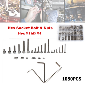 1080pcs M2 M3 M4 Stainless Steel Hex Socket Bolt And Nuts Set Fastener Hardware Hexagon Socket Head Cap Screws Flat Washer With 3pcs Nuts Wrench Kit Lazada