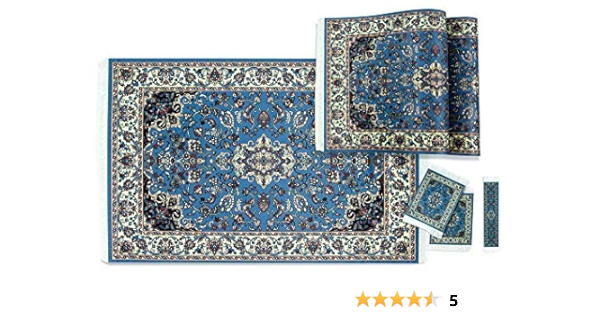 Amazon Com Baroque Royal Individual Oriental Rug Placemat Set 6 Piece Mini Persian Turkish Carpet Place Settings With Fringes 1 Table Runner 2 Woven Fabric Table Mats 2 Coasters 1 Bookmark Blue Home Kitchen